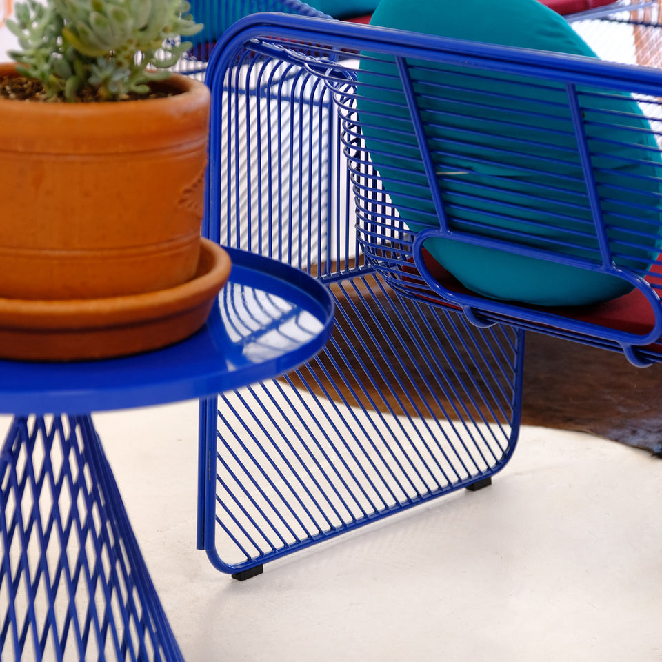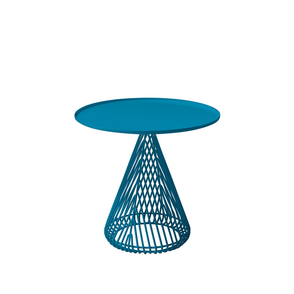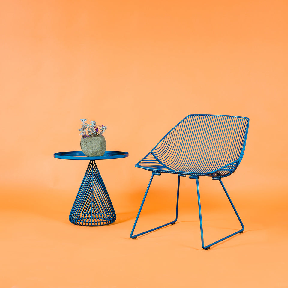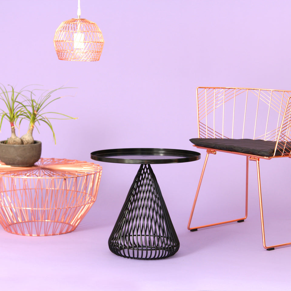 This vintage inspired wire side table is a simple solution for any space. The Cono Table requires no assembly, is light weight, and can be moved easily. The unique lipped metal shape keeps anything from rolling off the table top. The cone base stands out and fits into any modern of contemporary interior design