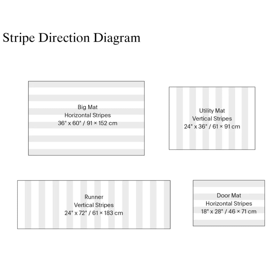 Please note that stripes run parallel to the long side on doormats and big mats, and parallel to the short side on the utility mats and runners.
