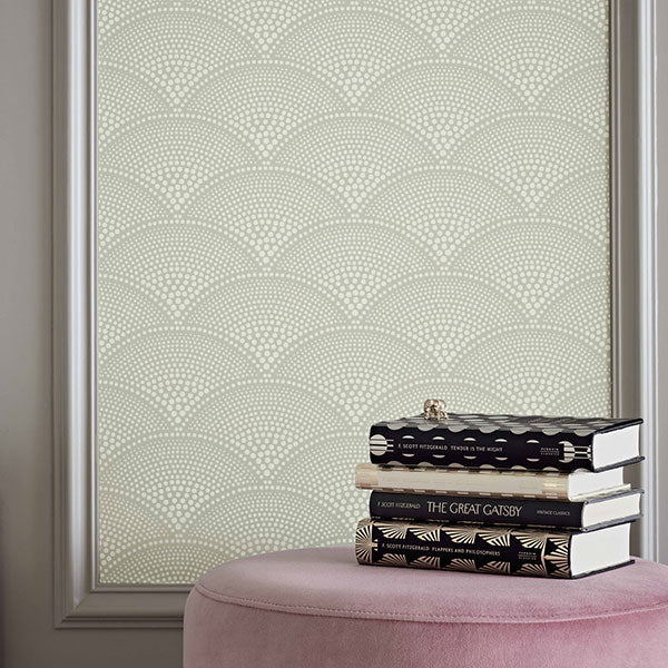 The soft Asian-inspired, geometric print of Feather Fan invites the eye wherever it is placed. The subtle lustre of the Charcoal and Bronze colourway gives added depth to this delicate pointillist-like design, whilst Taupe, Ballet Slipper, Seafoam, and Old Olive provide a charmingly sophisticated art deco palette.