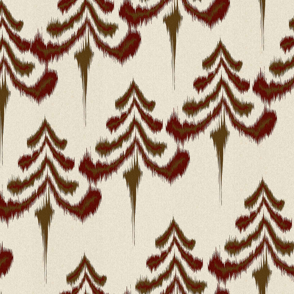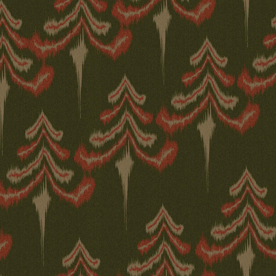 Though stylized with an ikat-like brush stroke, there’s no doubt that this pattern represents a forest packed with firs. High on the mountainside, in regimented rows, these evergreen trees and their sloping branches are as ubiquitous in the Tyrol as skiers and snow.