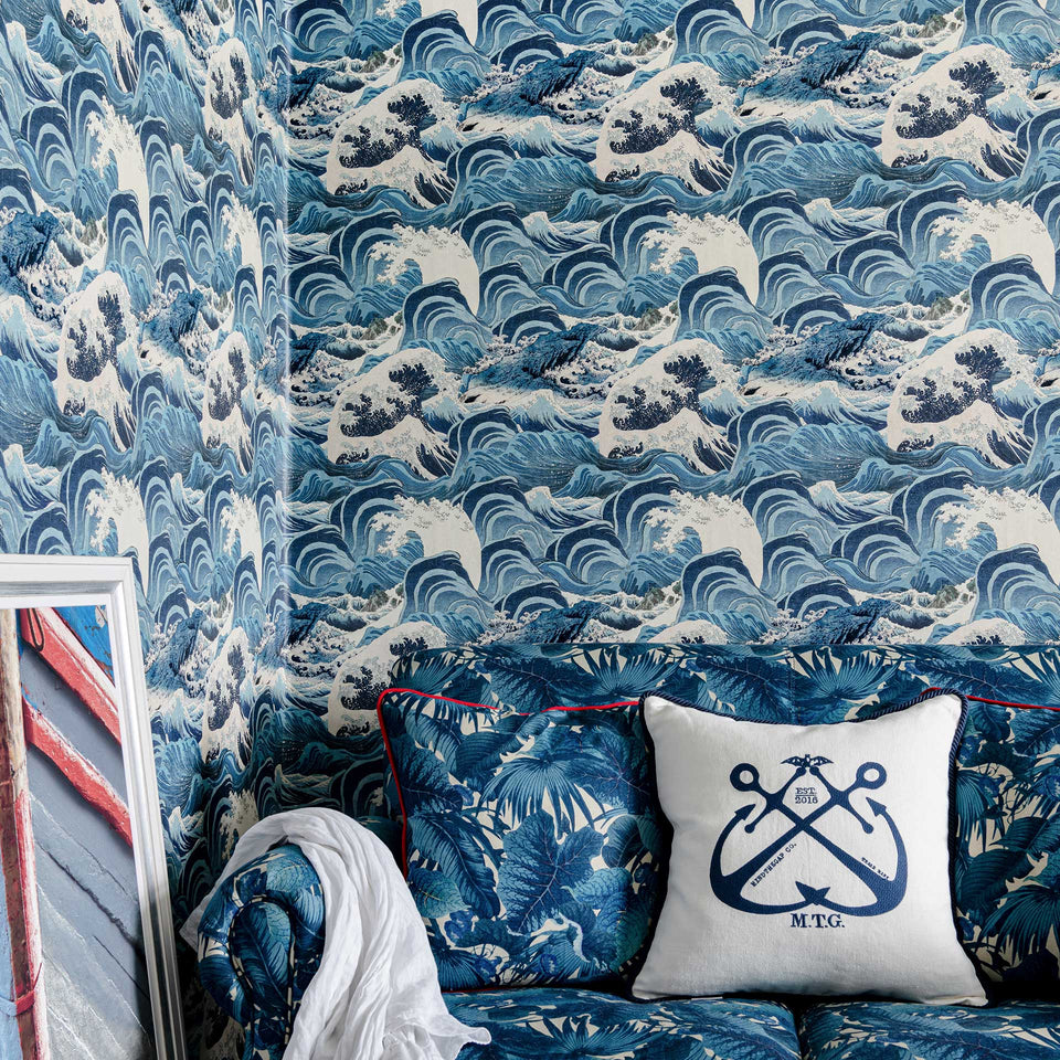 Curvy and graceful, SEA WAVES is inspired by old Japanese block prints, creating an ethereal feel that traces the outline of the deep-sea waves. Available in neutral, taupe or blue hues, it delicately decorates the walls of any interior.