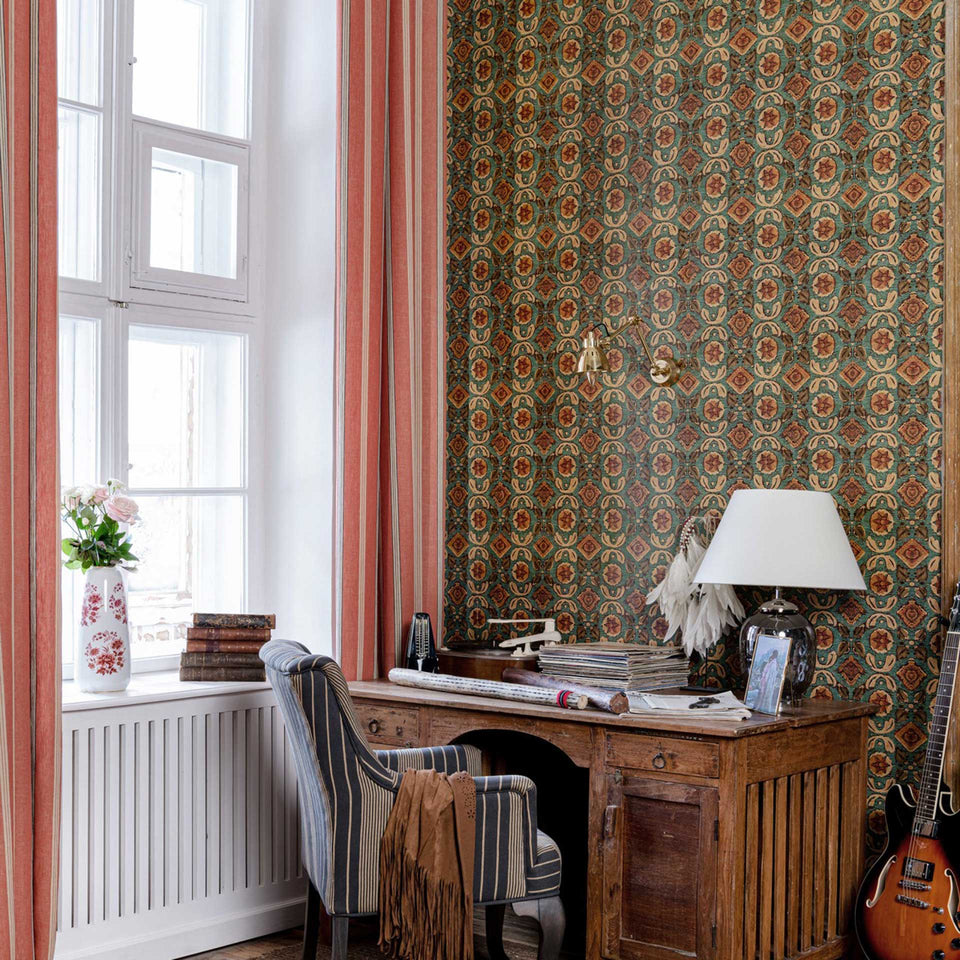 Embrace the vibrant spirit of Uttar Pradesh and overload your senses with awe-inspiring sights, sounds and scents with our VARANASI print, a celebration of age-old craft skills embedded with joyful motifs; each shape traditionally carved by hand into wood before being expertly printed. The pattern’s small scale making it suitable for large and small areas.