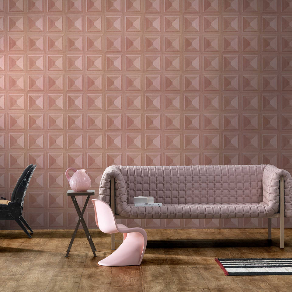 Available in soft shades of blue or pink, MARQUETRY wallpaper fits well with the increasing trend for pastel shades in interior design. Softer shades of pastel pink and serene blue are set to become the next big thing when creating a peaceful sanctuary in which to relax and unwind from the stresses of modern life. Naturally, this design would work well as a living room wallpaper to create a warm and inviting space in which to relax. Traditionalists expecting a new arrival may also appreciate the two color options for a potential nursery wallpaper. Moreover, the trompe l’oeil effect used in this design gives it an on-trend graphic appearance, whilst still referencing traditional craftsmanship in the form of centuries-old marquetry techniques.
