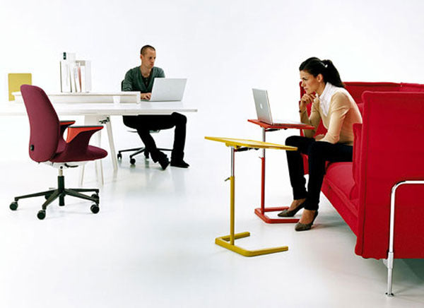 Thanks to technological innovations, a person can work on a laptop computer from anywhere, yet suitable furniture for this purpose is often lacking. NesTable from Vitra provides a simple and flexible solution to this problem. The surface of this occasional table is height adjustable, which makes it possible to maintain a correct ergonomic working posture, even while working from a sofa or lounge chair. Available in 5 colors.