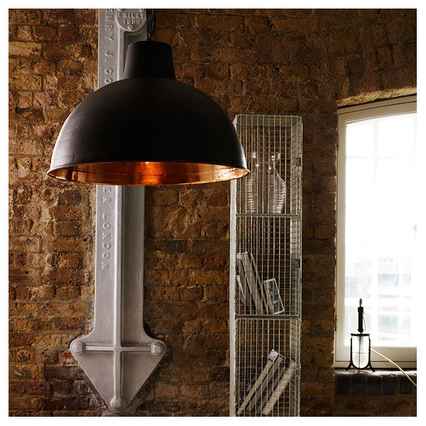 Extra large factory-style reflector pendants are sure to put design aficionados in a spin. Hand-crafted at Davey Lighting’s Birmingham metal works, the pendants are available in a weathered copper finish with a polished copper interior.