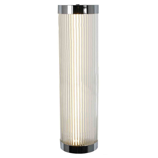 A chrome-plated LED version of the Glass Pillar wall light. The curved profiles are made of 0.3" diameter solid glass rods.