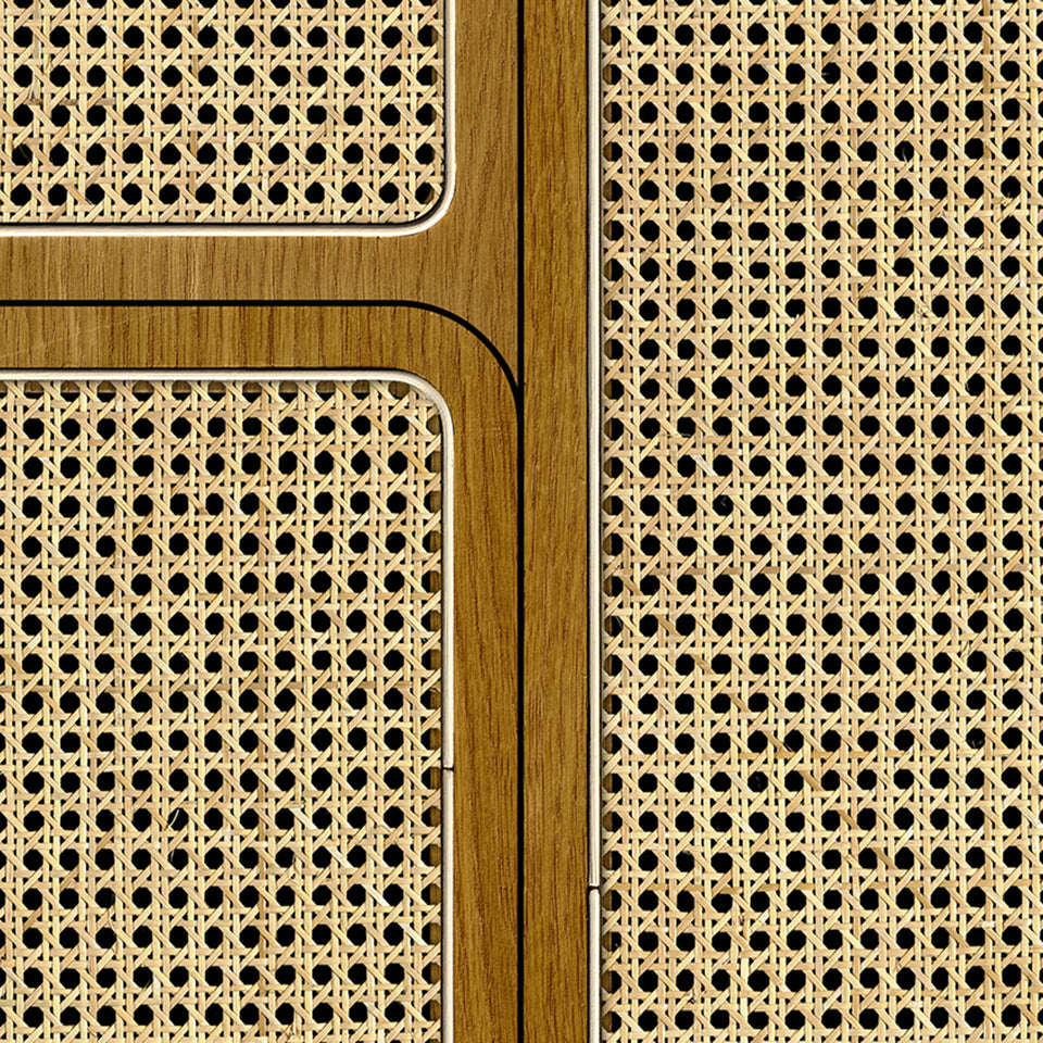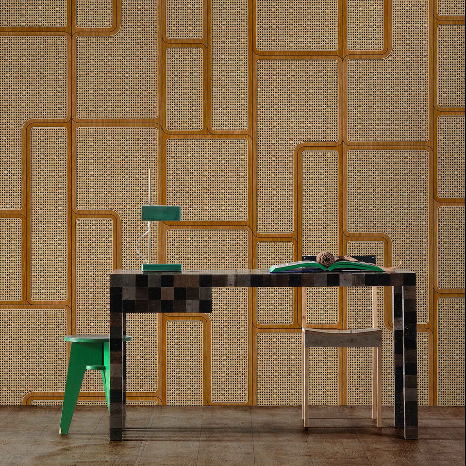Weaved cane is one of the oldest techniques used in furniture manufacturing. Cane strips have been used in objects since ancient times, originating as basket material and evolving into furniture. Caned furniture first appeared in Holland, England, and France around the 1660’s thanks to a bustling trade with Asia. Ultra high resolution scans make this collection a typical NLXL trompe-l’oeil wallpaper.