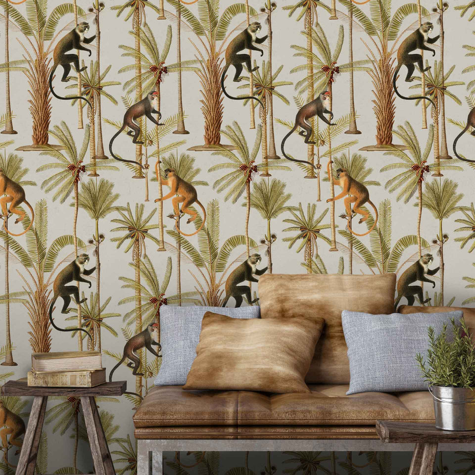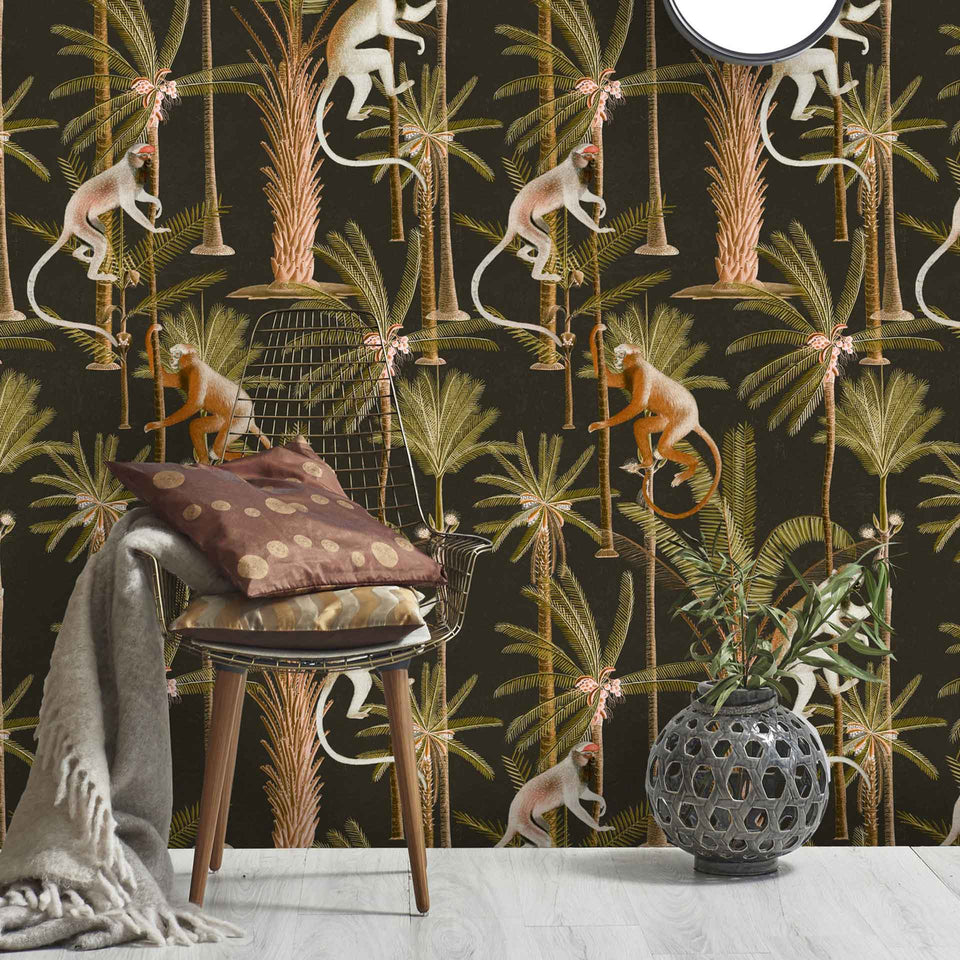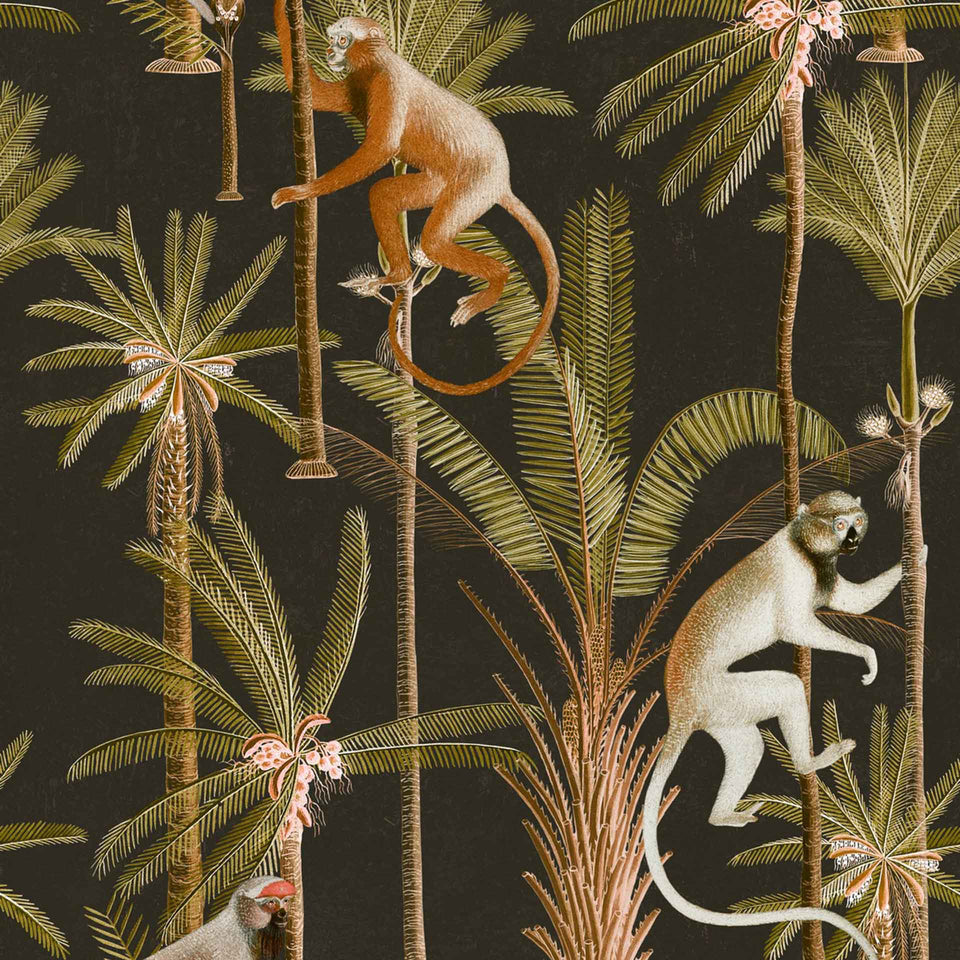 Barbados is a tropical style design featuring impressive palm trees and various monkey illustrations on a dark or light background.