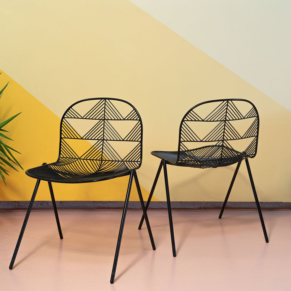 A stackable wire chair that's perfect for any occasion. The Betty Chair plays up a soft yet strong aesthetic with a gently curved shape and a contemporary edge perfect for modern interior or outdoor settings. Up to four wire chairs can stack neatly atop one another making the Betty as functional as it is beautiful.