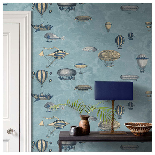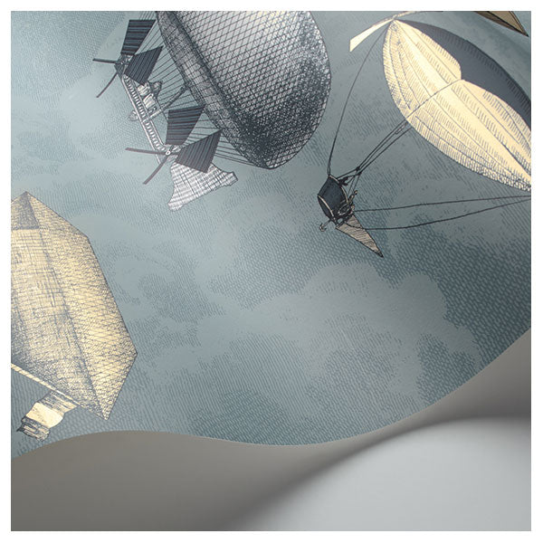 Fornasetti Macchine Volanti - Slate Blue / Gilver Wallpaper by Cole & Son