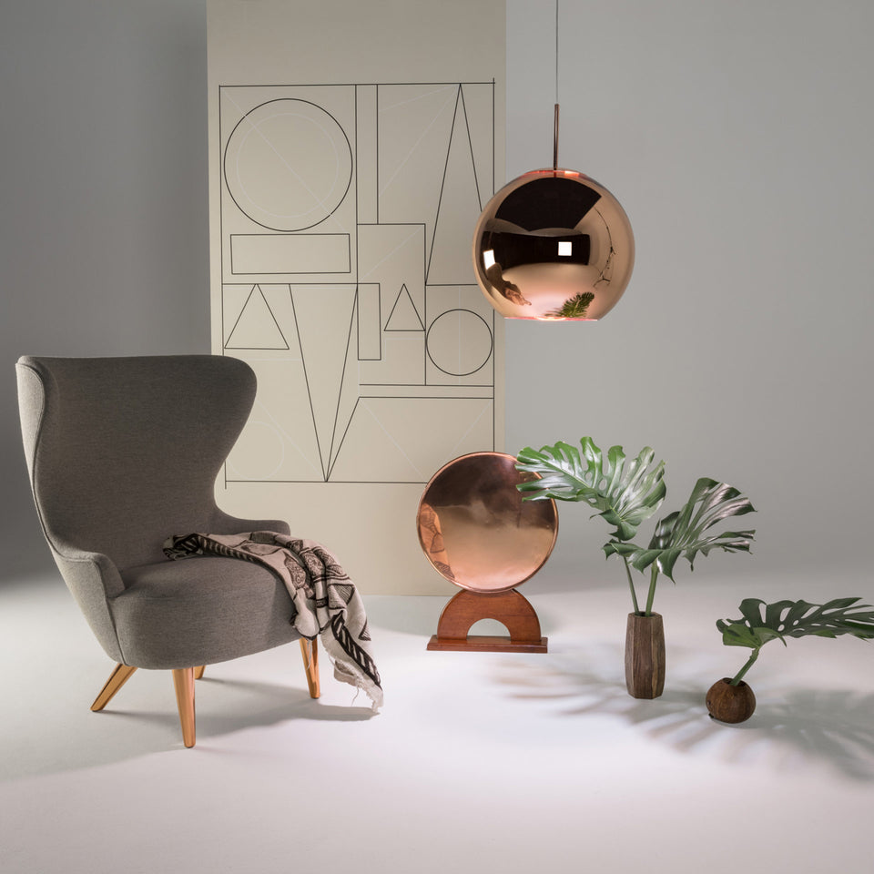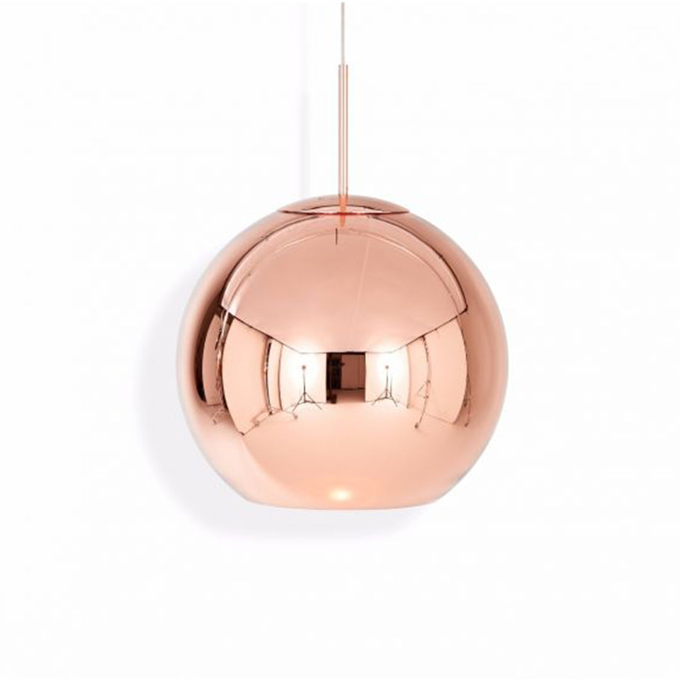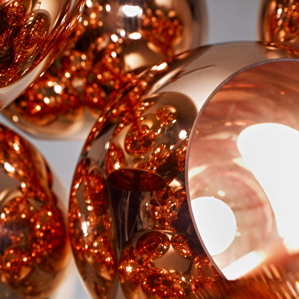 The Copper Shade is created by exploding a thin layer of pure metal onto the internal surface of a polycarbonate globe. The result is a highly reflective surface with a warm metallic glow. Can be hung in multiples using Pendant System or as a single pendant light, to create a focal point.