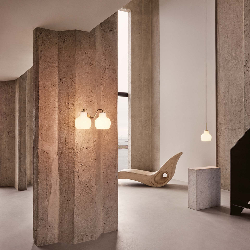The VL Ring Crown family derives from a lamp designed by architect Vilhelm Lauritzen for the Danish broadcasting house in Copenhagen in the 1940s. The wall lamp and pendant versions, with the characteristic organic form, were put to good use at the Danish broadcasting house. The original VL Ring Crown never appeared there, but not long after, a Ring Crown based on the original drawings was launched. In 1947, the designer Finn Juhl, who worked for Vilhelm Lauritzen, used the VL Ring Crown as part of the interior design for the Danish porcelain manufacturer Bing & Grøndahl in Copenhagen.